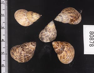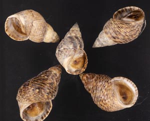 クオリティの説明 Height 21-27mm w/o F++/+ 殻口に少しチップがある個体もありますが、綺麗な生貝採集標本です。フィリップウズラタマキビ螺塔は緩やかに膨らむ。軸唇は広く、えぐられる。8〜9本の一次肋があり、体層には13-18本の太い螺肋と間肋1〜3本と、微細な螺状脈からなる彫刻が見られる。色彩変異多し。暗褐色の個体が優占するが、時には橙色、ピンク色、または黄色がかった個体も見られる。地色より暗く、輪郭がぼやけたダッシュ模様や斑点があり、それらは縫合部分で整列して不明瞭な斜めの縞を形成する。(AUSTRALIAN MARINE SHELLS Vol.1 p.145) 台湾 ; フィリピン; オーストラリアのマングローブ帯の木の幹に生息します。 |