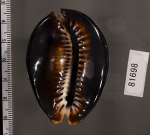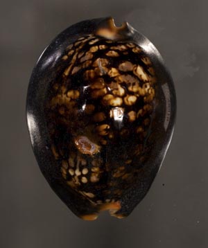 | クオリティの説明 Height 57mm F+ 背面自己補修跡や吻部にチップが少しあります。タイのアンダマン海近海のものは、このように黒色に近いものが多いです。 紀伊半島以南、インド・太平洋域に分布します。 |