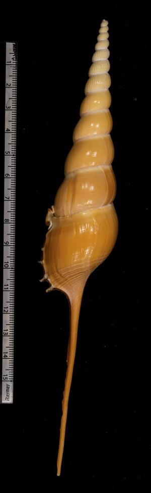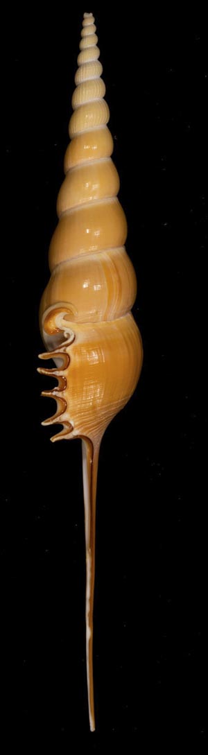 | クオリティの説明 Height 202mm F+/++ 水管部部と殻頂少しチップがあります。台湾以南、インド・西太平洋域に分布します。紡錘型で糸紡ぎ貝ともいわれ、フリル状の外唇と長い前水管が魅力的でコレクターに高い人気の貝です。 |