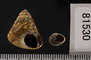 | クオリティの説明 Height 5,18mm F+ 蓋はありません。オーストラリア特産の非常にユニークなタマキビの仲間 ニシキウズガイ(Trochidae)のような円錐形をしていますが、実はタマキビ(Littorinidae)の仲間。 オーストラリアの著名な貝類収集家F.J. Springsteenの採集 オーストラリア(ビクトリア州中部からタスマニア、ニュージーランド)の潮間帯の石や岩の上に生息します。 |