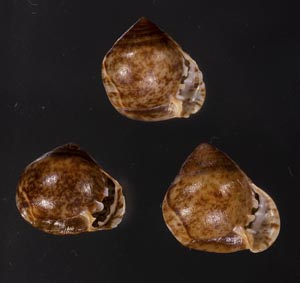 クオリティの説明 Height 11,12,14mm F++ 殻口わずかなチップがありますが、綺麗な標本です。3個セットです。全体が変圧されたような奇形になるのが特徴、東南アジア(フィリピン、タイ、ベトナム)、インドに分布します。 |