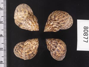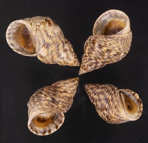 クオリティの説明 Height 24-29mm w/o F++/+ 殻口に少しチップがある個体もありますが、綺麗な生貝採集標本です。フィリップウズラタマキビ螺塔は緩やかに膨らむ。軸唇は広く、えぐられる。8〜9本の一次肋があり、体層には13-18本の太い螺肋と間肋1〜3本と、微細な螺状脈からなる彫刻が見られる。色彩変異多し。暗褐色の個体が優占するが、時には橙色、ピンク色、または黄色がかった個体も見られる。地色より暗く、輪郭がぼやけたダッシュ模様や斑点があり、それらは縫合部分で整列して不明瞭な斜めの縞を形成する。(AUSTRALIAN MARINE SHELLS Vol.1 p.145) 台湾 ; フィリピン; オーストラリアのマングローブ帯の木の幹に生息します。 |