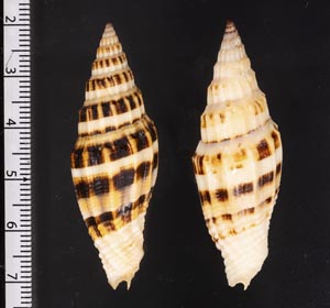 クオリティの説明 Height 51,51mm F++/+ 殻表に侵食痕が少しありますが、綺麗な標本です。典型的な模様の個体。フィリピン産が多いですが、中央太平洋域に分布するようです。 |