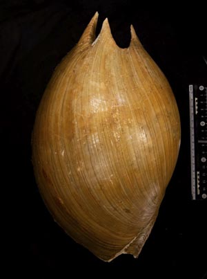 Tutuala, Timor. Trawled southeast of Timor Sea. May 2004. English name : Baler Shell |
