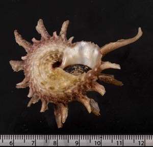 クオリティの説明 Breadth 36mm w/o F++/+ 棘は欠損している部分がありますが、色合いは綺麗です。和名は、喜納静氏に献名 奄美諸島以南のフィリピン、熱帯インド・西太平洋域の潮間帯から30m深の岩礁に生息します。 |