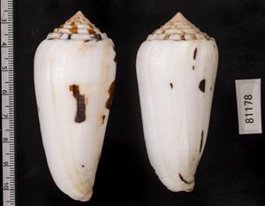 | クオリティの説明 Height 74,78mm F++ 弱い成長傷や、殻口わずかなチップがある個体もありますが、殆どきれいな標本です。二枚目の画像で、外唇が分かるように撮影しています。特価大きめ綺麗な標本です。学名の由来: ラテン語の "gubernator" は統治者、支配者や知事の意。イモガイの中でも堂々とした姿などから由来か?さしずめ、「立派なイモガイ」のような意味でしょうか?和名の由来: 「東雲(しののめ)」とは夜明け前の空が少しずつ明るんでくる様子で、この貝の地色である白地に浮かび上がる褐色の模様が、曙の空の情景を思わせることから来たようです。インド洋の浅海に生息します。同じ種でありながら、点模様の個体、縦縞模様の個体、網目状になる個体、さらにはほとんど模様のない真っ白な個体などFormがいろいろあります。 |