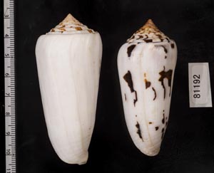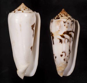 | クオリティの説明 Height 67,75mm F++ 弱い成長傷や、殻口わずかなチップがある個体もありますが、殆どきれいな標本です。二枚目の画像で、外唇が分かるように撮影しています。特価大きめ綺麗な標本です。学名の由来: ラテン語の "gubernator" は統治者、支配者や知事の意。イモガイの中でも堂々とした姿などから由来か?さしずめ、「立派なイモガイ」のような意味でしょうか?和名の由来: 「東雲(しののめ)」とは夜明け前の空が少しずつ明るんでくる様子で、この貝の地色である白地に浮かび上がる褐色の模様が、曙の空の情景を思わせることから来たようです。インド洋の浅海に生息します。同じ種でありながら、点模様の個体、縦縞模様の個体、網目状になる個体、さらにはほとんど模様のない真っ白な個体などFormがいろいろあります。 |