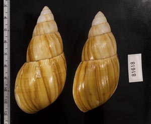 | クオリティの説明 Height 82,88mm w/p F++/+ 殻口に少しチップがある個体もありますが、2個セット特価です。フデマイマイよりも更に大きく、白地に木目のようにまだらになる皮があります。 |