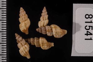| クオリティの説明 Height 10-13mm F+/++ 打ち上げ個体ですが、比較的きれいな標本です。ケープタウン大学採集品です。 殻は堅牢で薄い黄褐色から茶褐色の肩部が丸く角張る階段状の約6層程。荒い格子状の螺肋と縦肋があり、水管部付近が褐色になる個体が多い。殻頂はやや丸い。 南アフリカ南東部に分布します。 |