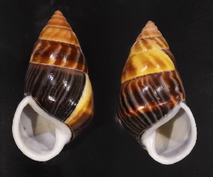 | クオリティの説明 Height 44,46mm F++ 弱い成長傷が少しある個体もありますが、全体的に綺麗な標本で、左右巻セットです。濃色の個体 ソレムマレーマイマイの火焔型に似ますが、縫合がくびれなく寸詰まりの円錐型、地色がオレンジがかっている、ソレムほど大きくならない、軸唇が殆ど膨れないので違いが分かります。バリ島周辺に棲息、島によって若干formが違うそうです(採集者の弁)。 |