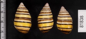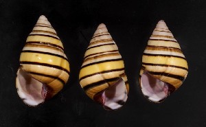| クオリティの説明 Height 28,30,31mm F++/+ 殻口わずかなチップがある個体もありますが、右巻きの個体もたまに含まれます。小ぶりですが、綺麗な標本です。キューバの代表的なLiguusで、黒褐色に縁どられた黄色のリボンのような帯をめぐらす。殆ど左巻き。 |